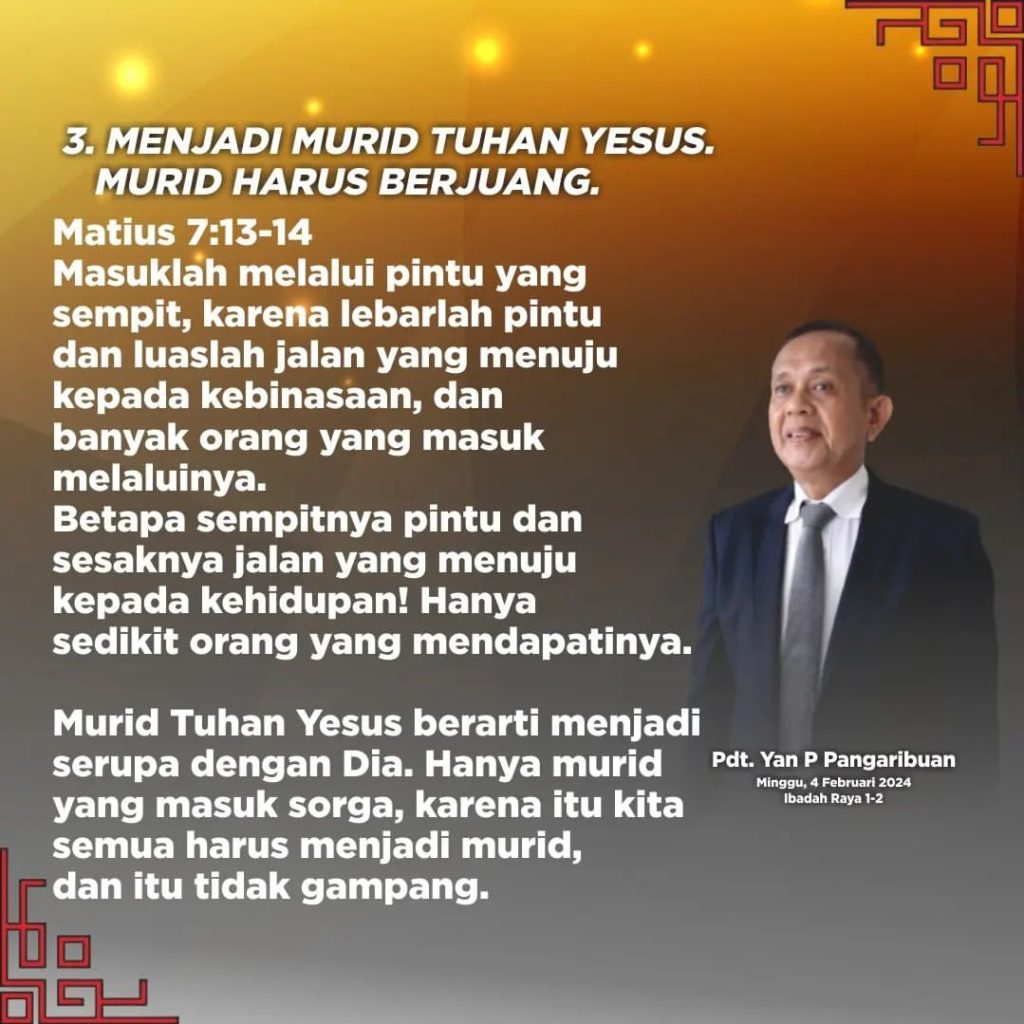 Mengawali bulan ini, kita diingatkan kembali untuk memiliki spirit yang berkobar dalam memberitakan Injil Kristus dan membawa jiwa-jiwa diselamatkan di dalam Kristus. Jangan sampai mereka binasa karena mereka dan kita semua sebetulnya sudah ada dalam kutuk kebinasaan karena dosa-dosa kita maupun nenek moyang kita.